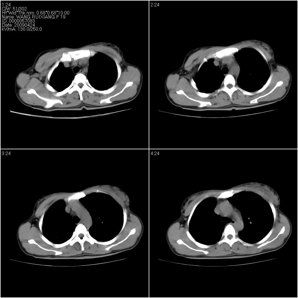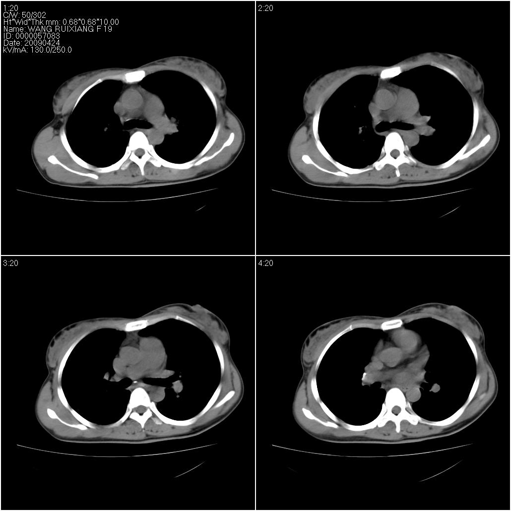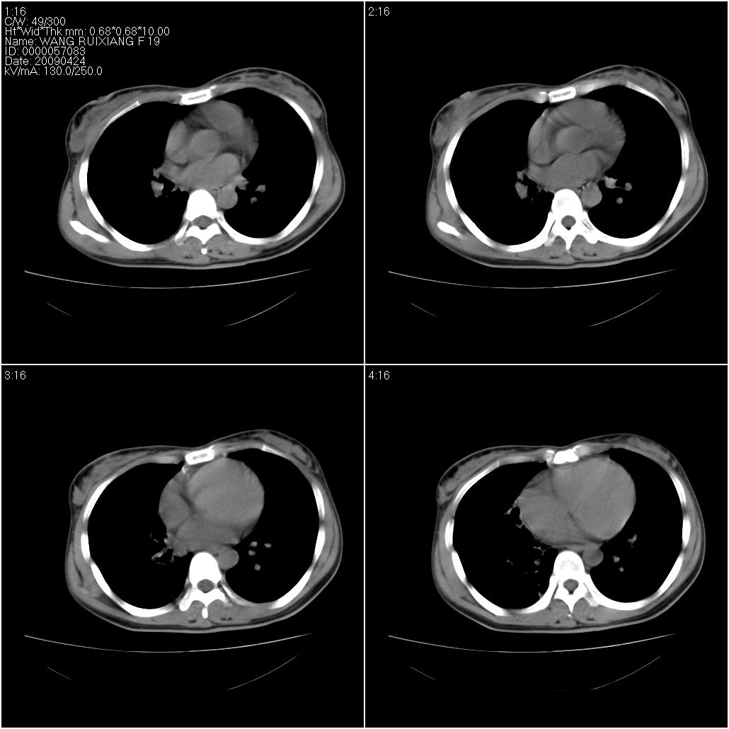 标题: CT19588:女性,39岁。患者胸闷不适,上楼时气喘。 [打印本页]