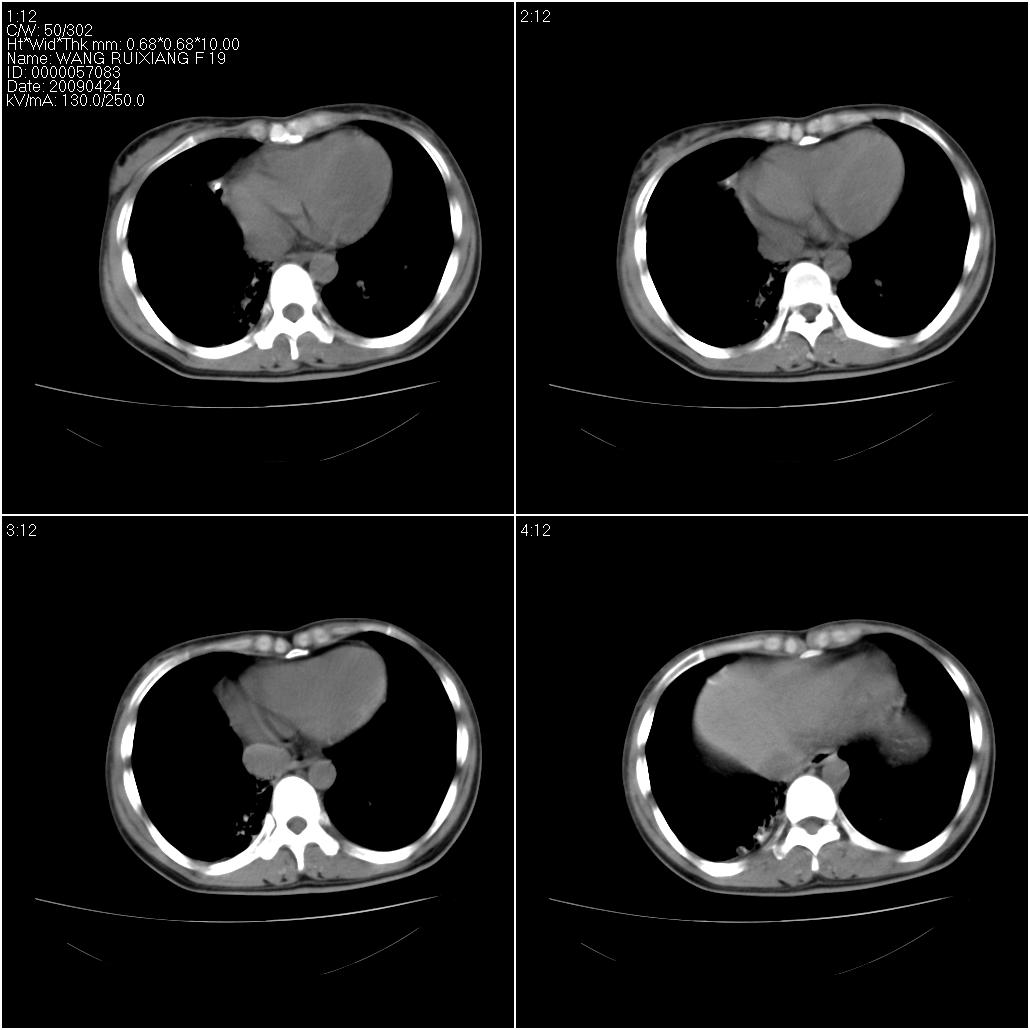 标题: CT19588:女性,39岁。患者胸闷不适,上楼时气喘。