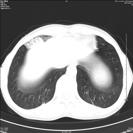 虑右肺中叶感染性病变并右肺中、下叶肺泡积血