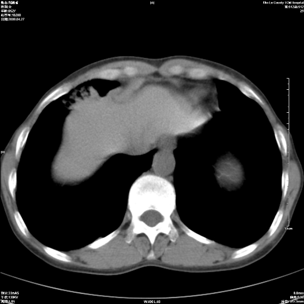 病灶内可见含气影。考虑右肺下叶内基底段炎症