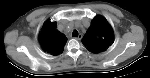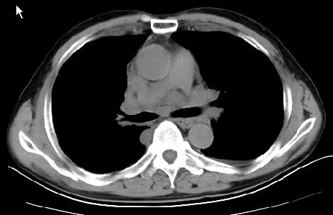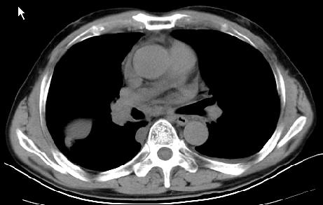 以下是引用草之原在2009-5-2 19:29:00的发言:[br]1.考虑右侧中心型肺ca纵膈淋巴结转移,双侧胸腔积液及右侧叶间裂积液,心包积液。[br]2.两肺上叶病灶,纵膈窗显示部分病灶硬化,考虑:结核。[br][br] [br]