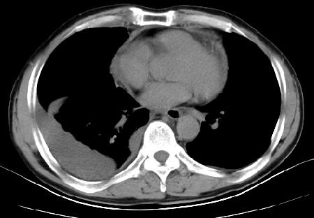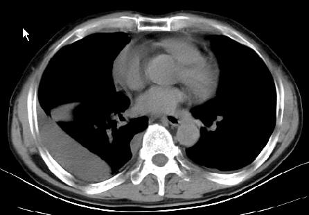 以下是引用zjzjr在2009-5-2 20:16:00的发言:[br]肺结核,转移瘤.纵隔淋巴结转移或淋巴瘤,右侧包裹性积液、斜裂积液。心包积液。