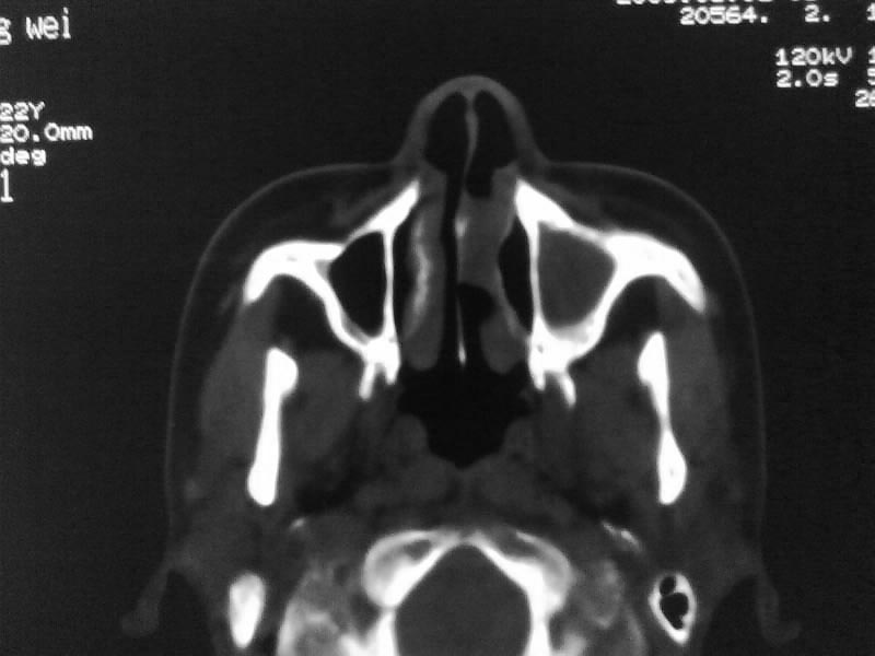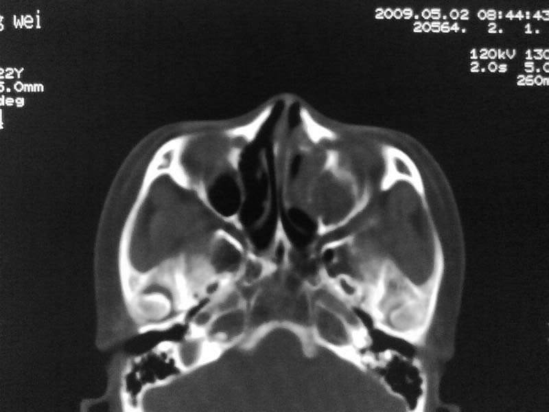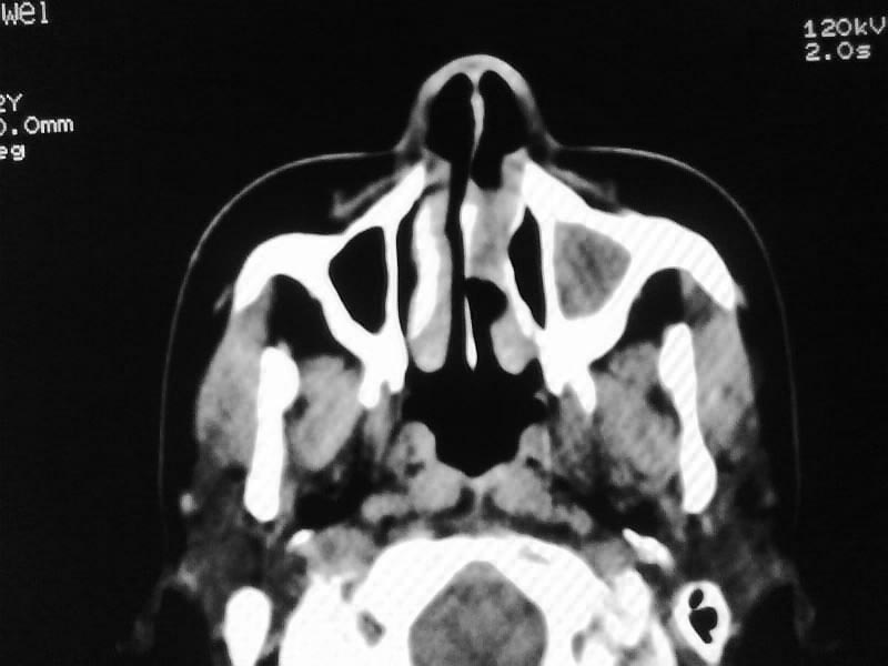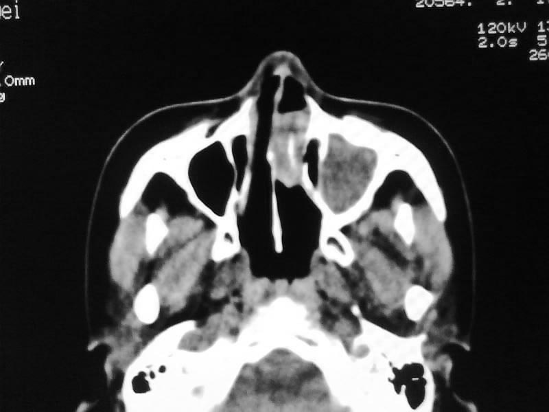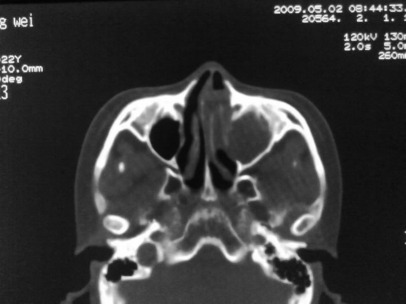 以下是引用zjzjr在2009-5-3 9:59:00的发言:[br]左侧鼻腔息肉、左侧筛窦、上颌窦炎症。双侧下鼻甲粘膜肥厚。