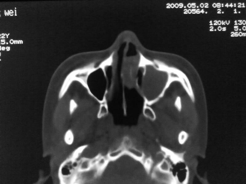 以下是引用随光逐影在2009-5-3 13:02:00的发言:[br]1)左侧鼻腔新生物(息肉可能)。2)左侧上颌窦及左侧筛窦炎症。3)双侧下鼻甲黏膜肥厚。