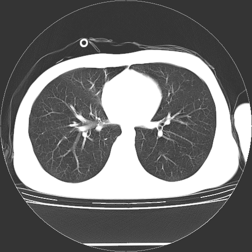 男,20岁,右侧气胸行闭式引流术后五天ct检查看肺内是否有肺大泡,纵隔窗未见异常,未上传。