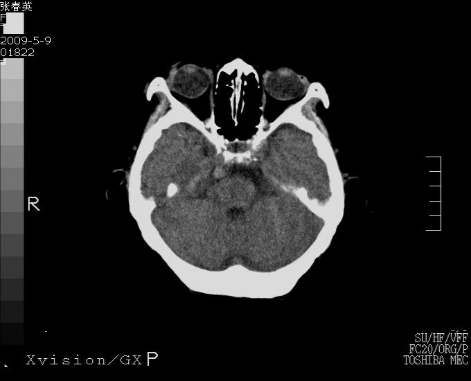以下是引用同在2009-5-9 19:56:00的发言:[br][quote]以下是引用余辉在2009-5-9 18:32:00的发言:[br]基底动脉稍扩张且右偏,其上方层面见高密度块影,考虑动脉瘤可能,建议增强,皮脑