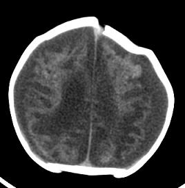支持缺血缺氧性脑病留下的后遗改变(脑软化灶+脑发育不全+双侧慢性硬膜下积液+小头畸形)。