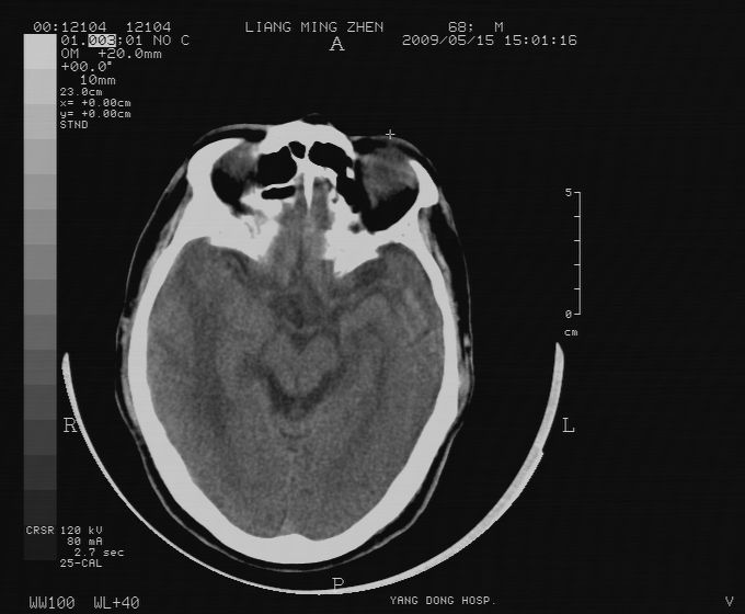 CT19966:男性,六十岁,有高血压及鼻咽癌病史,头晕,呕吐