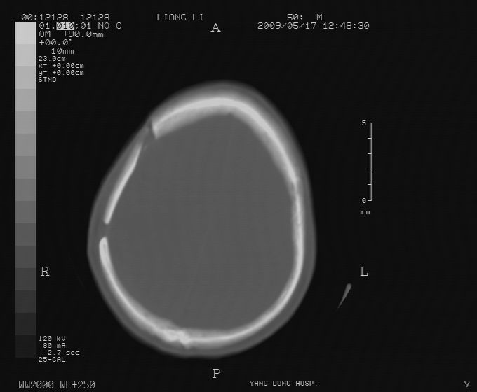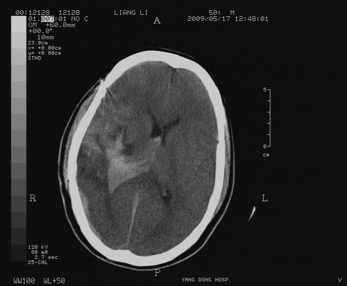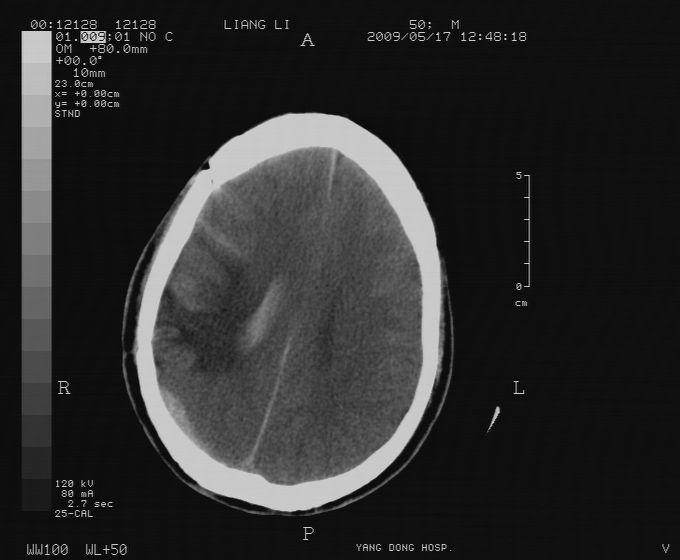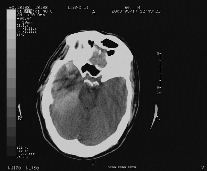 以下是引用zjzjr在2009-5-18 11:26:00的发言:[br]右颞枕叶及基底节区脑出血破入脑室系统,蛛网膜下腔出血,右枕顶部硬膜下血肿.颅骨及颅内低密度软化灶为血肿清除术后改变.