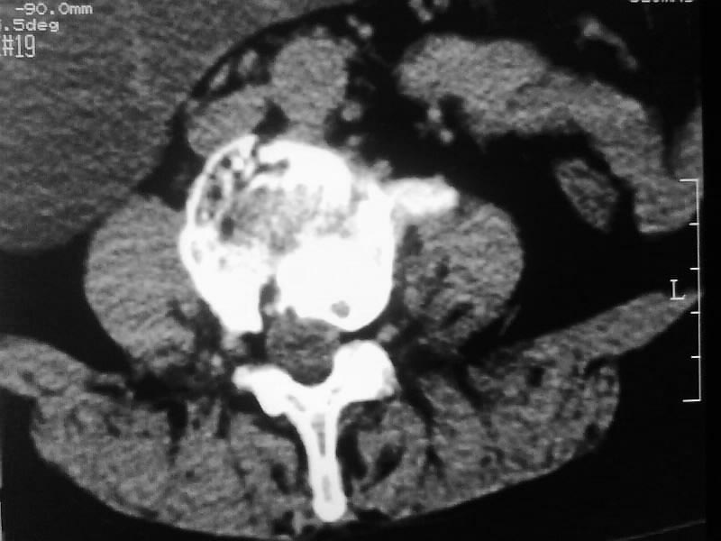 以下是引用黑白光影在2009-5-20 15:54:00的发言:[br][quote]以下是引用yrj0513在2009-5-20 15:40:00的发言:[br]定位相示l2呈楔形改变(ct示陈旧性骨折改变,图像未传),l4.5椎体融合,以下是l4.5ct平扫.请各位看看,