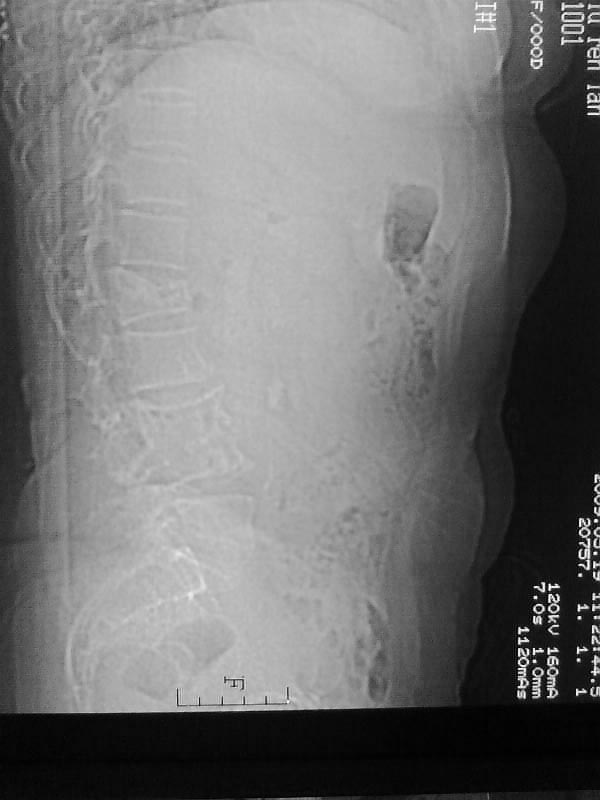 [br][br][br]定位像咋看也是腰一压缩性骨折,因为它上面的一个椎体的肋骨。[br]1、三四椎体结核,2、水平骶椎。[br][br][本贴已被 黑白光影 于 2009-5-20 15:58:17 修改过]