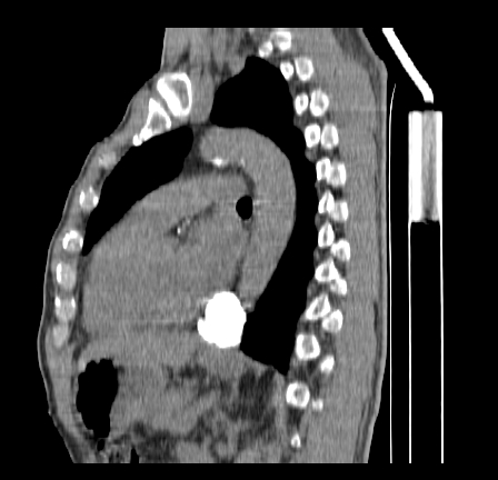 以下是引用影像孺子牛在2009-5-20 23:18:00的发言:[br]左侧后心膈角处类椭圆形钙化灶,最常见的是淋巴结钙化,但太大了不支持,其它如食管囊肿钙化、实性畸胆瘤等。何东西钙化真不好定。