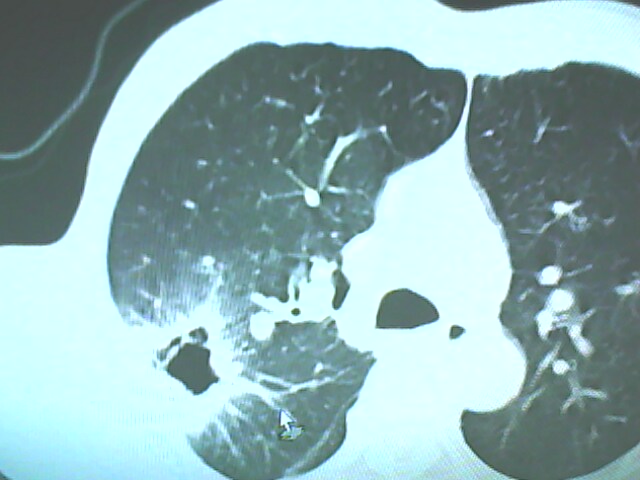 以下是引用hhcckk在2009-5-29 15:09:00的发言:[br]考虑癌性空洞可能性大,空洞内壁不规则,病灶周围模糊,分叶、有毛刺[br][br][本贴已被 hhcckk 于 2009-5-29 15:10:16 修改过]