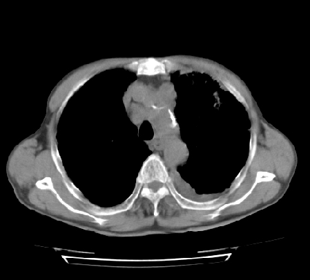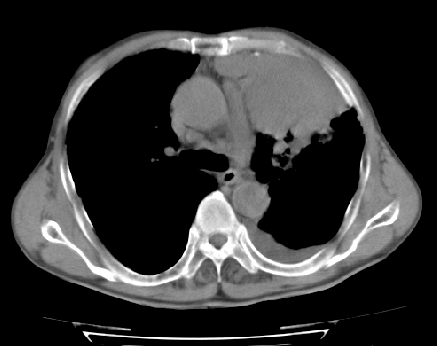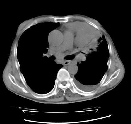 以下是引用ct诊断高手在2009-5-29 13:50:00的发言:[br]考虑左侧中央型肺癌,阻塞性肺炎伴肺不张。纵隔淋巴结转移。慢支 肺间质纤维化肺气肿。左侧胸腔积液。左侧肋骨转移?