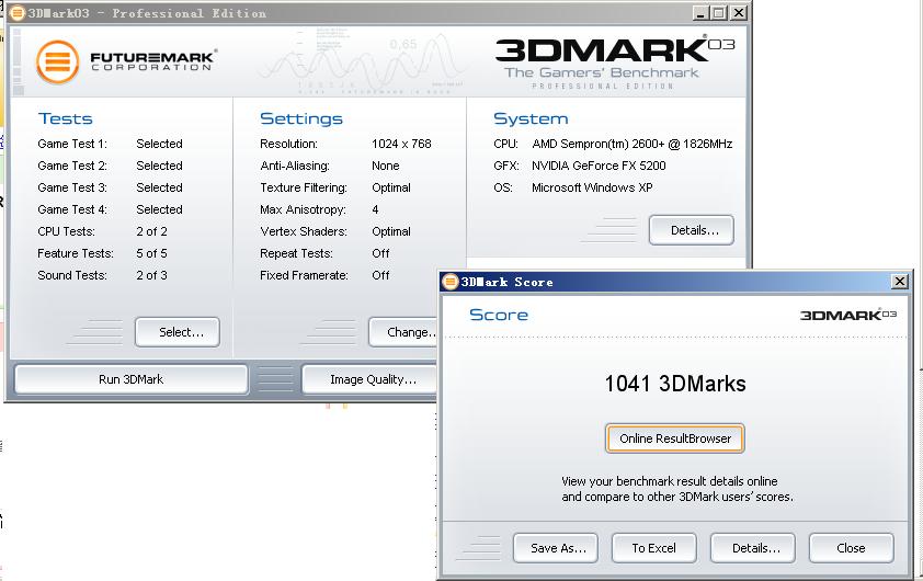 解释一下:这个软件(3d mark03,3d mark06)是专门来测试显卡性能的,最后得分越高,说明显卡总体性能越好。当然这只是个参考值。