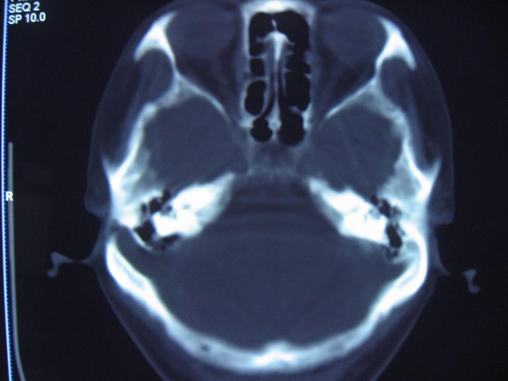 以下是引用随光逐影在2009-6-10 19:16:00的发言:[br]1)右侧乙状窦前移。2)右侧乙状窦区皮样囊肿或表皮样囊肿待排;建议行mri检查。