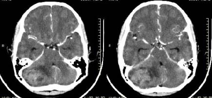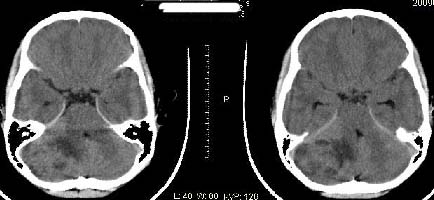 以下是引用随光逐影在2009-6-10 22:26:00的发言:[br]考虑右侧小脑胶质瘤,髓母细胞瘤待排。