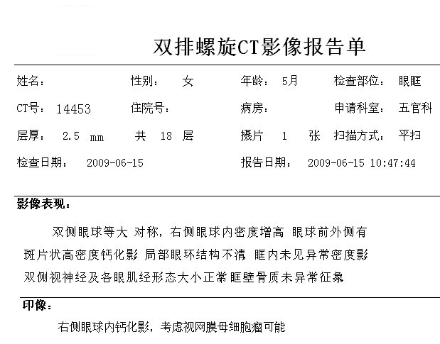 右侧视网膜母细胞瘤可能性大。 可怜的孩子,