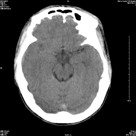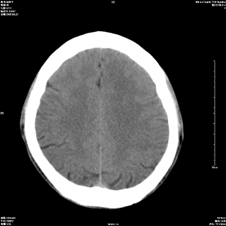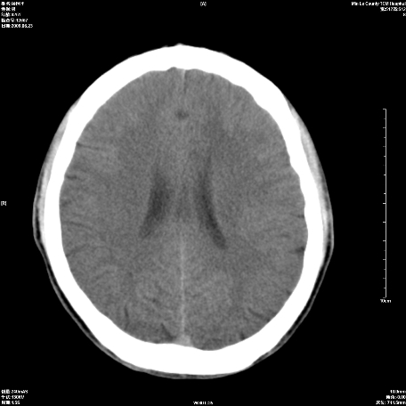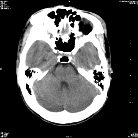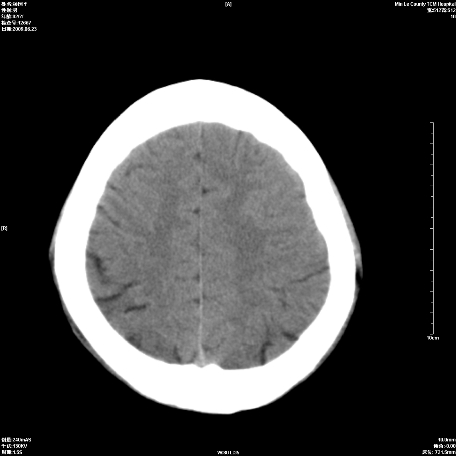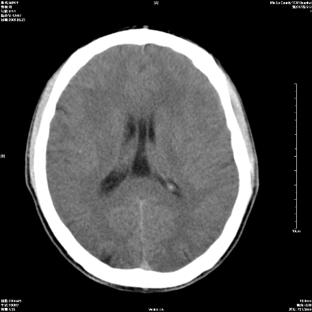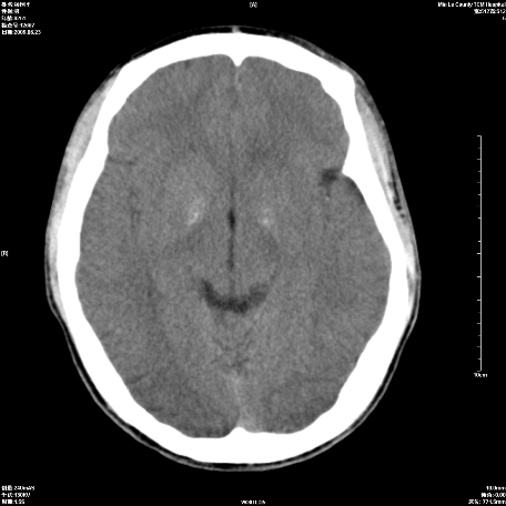 以下是引用随光逐影在2009-6-23 14:30:00的发言:[br]1)颅脑ct轴位平扫颅内未见明确异常。2)左侧额部头皮软组织肿胀。[br][br](双侧苍白球见对称性钙斑,透明隔间腔与vergae腔并存)