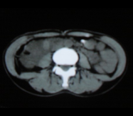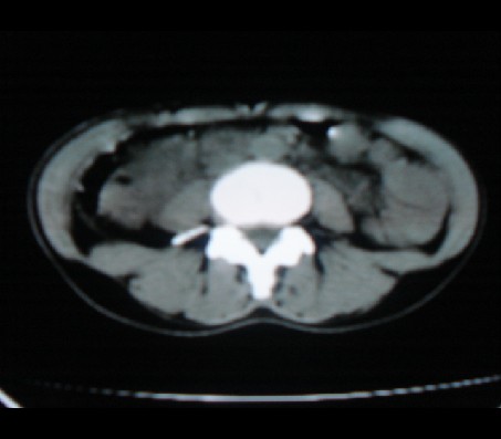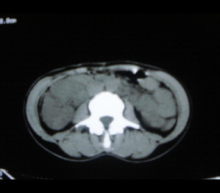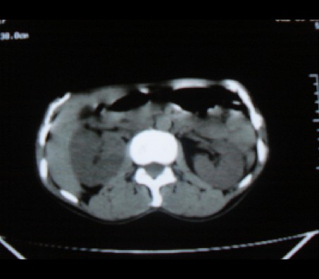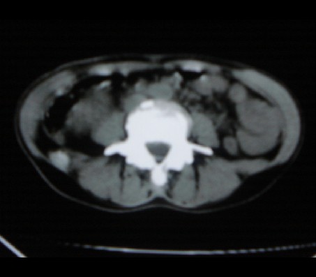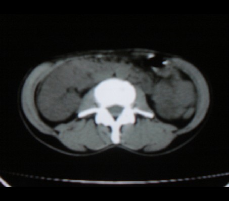 女性,51岁。ct号26154.手术时发现右下腹部包块,b超双肾无明显异常。请会诊!
