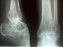 以下是引用zxl51642在2009-7-17 10:13:00的发言:[br]多关节骨质疏松并关节间隙狭窄,关节变形。考虑类风湿,结合病史及实验室检查(rf因子)。[br]
