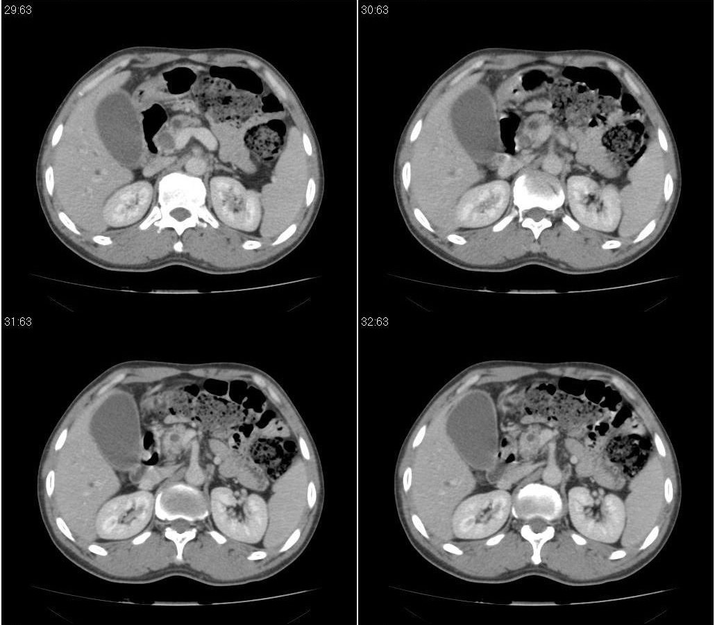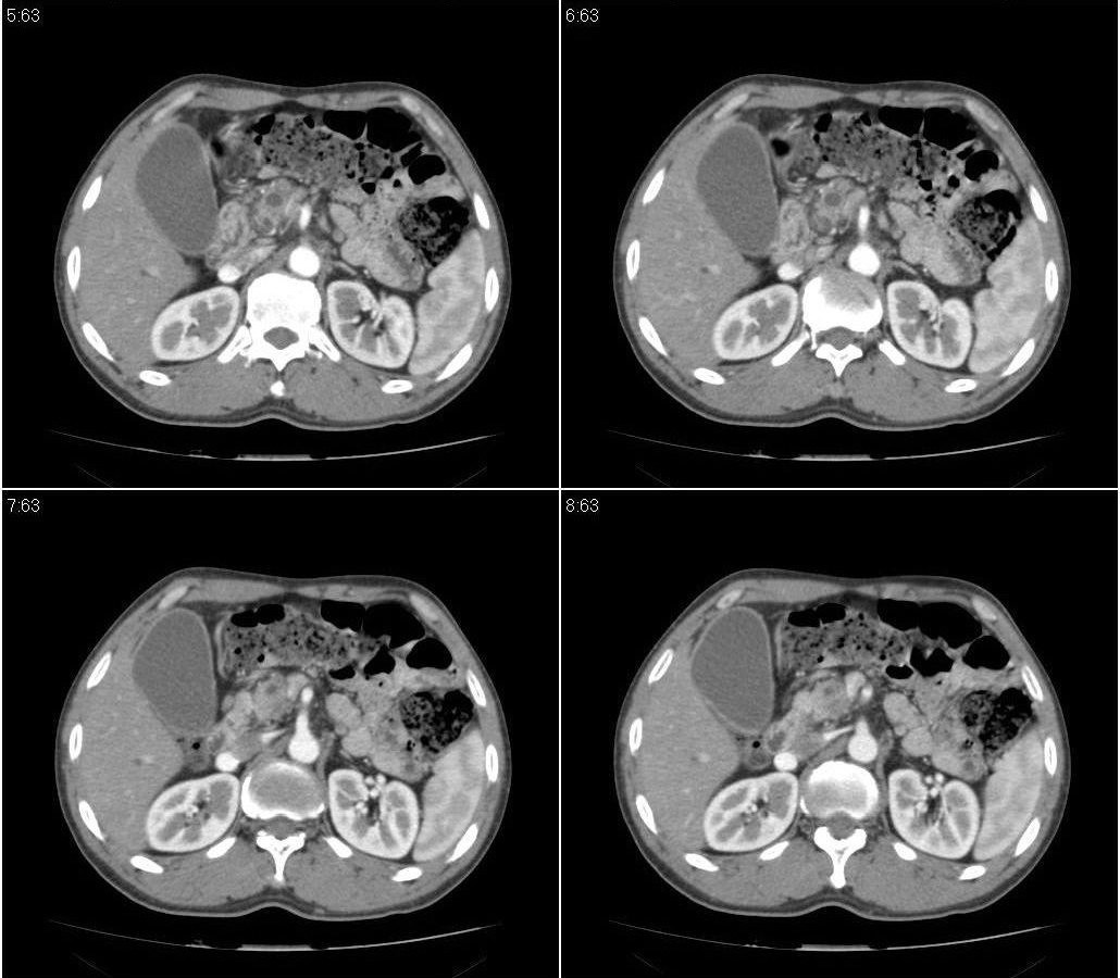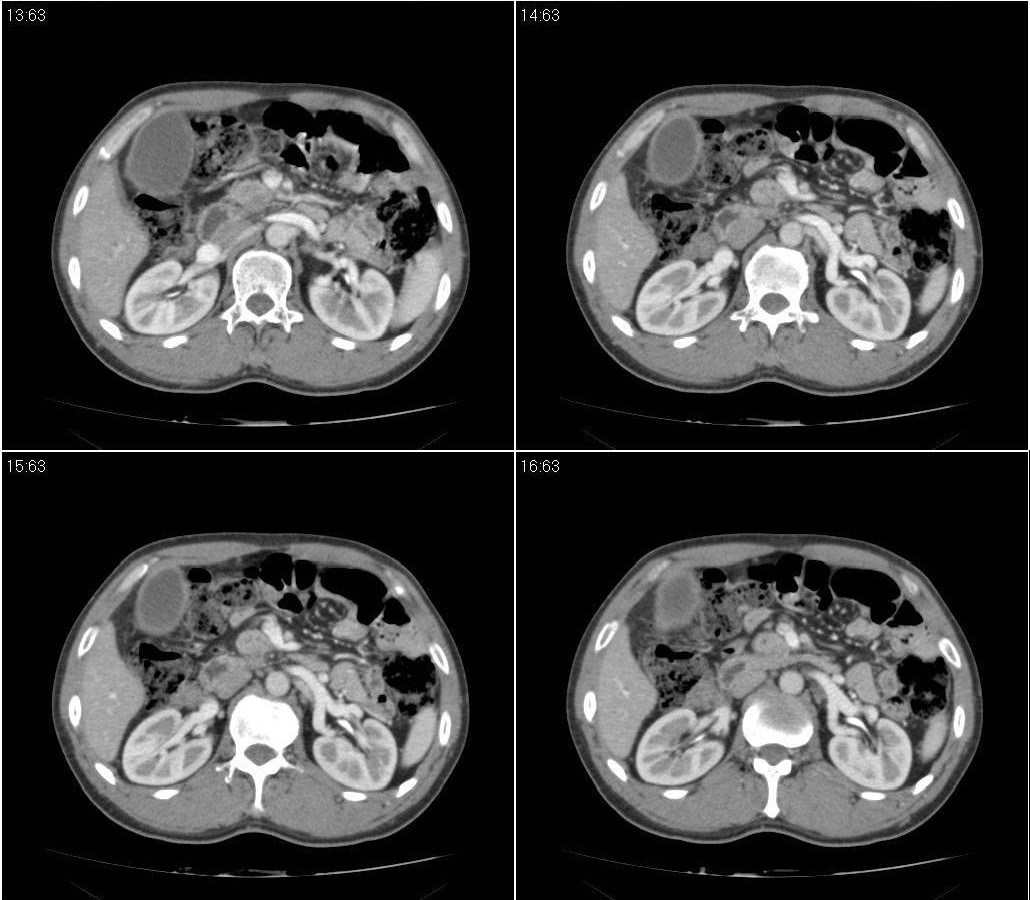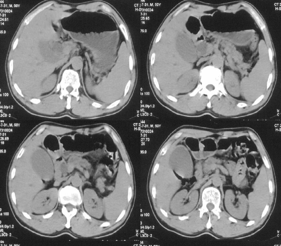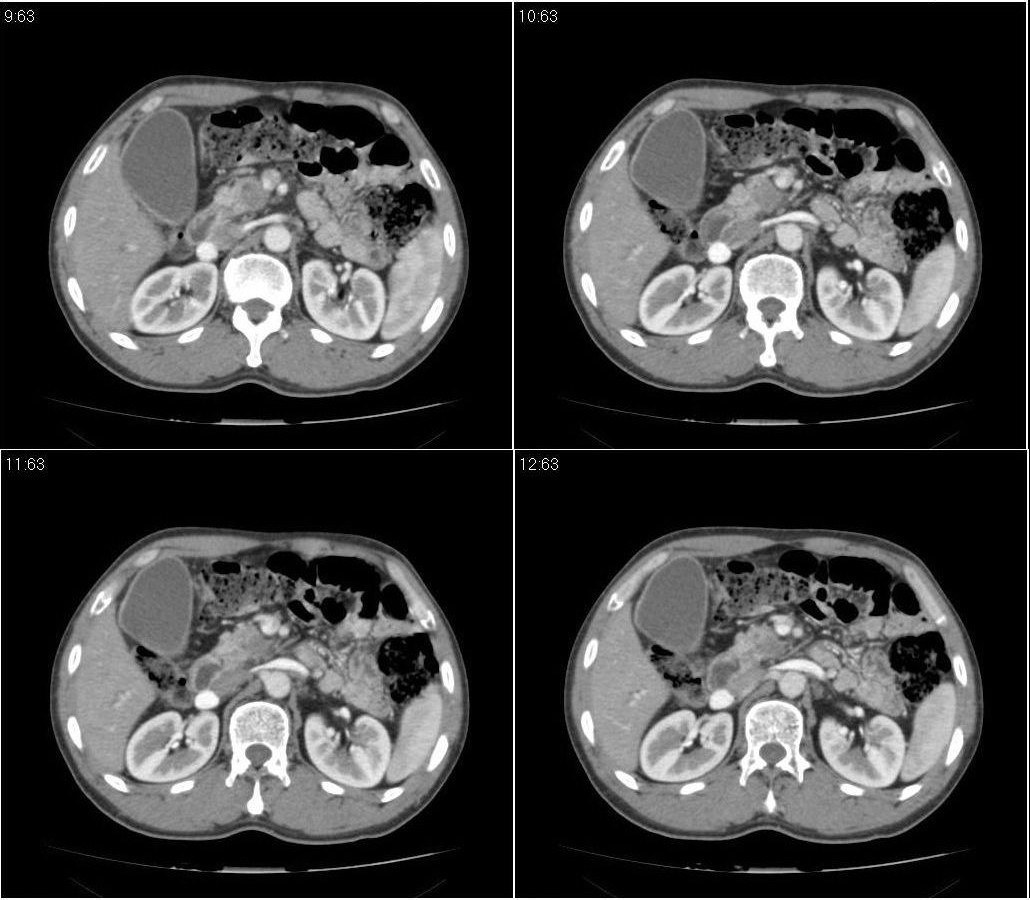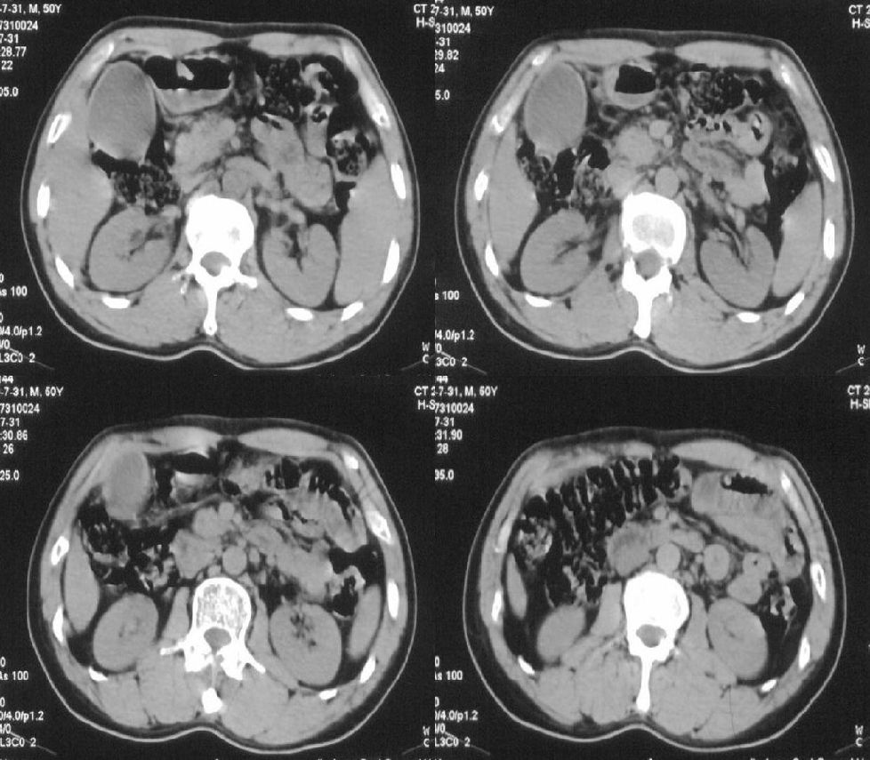 胰头强化欠均匀,胆胰管扩张。考虑胰头癌可能性大。