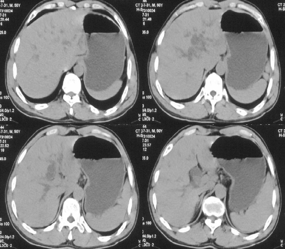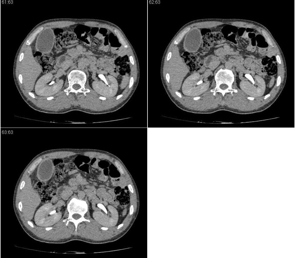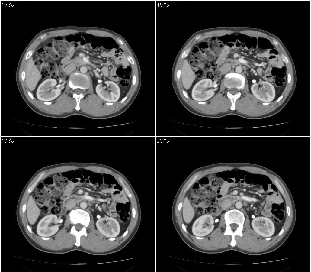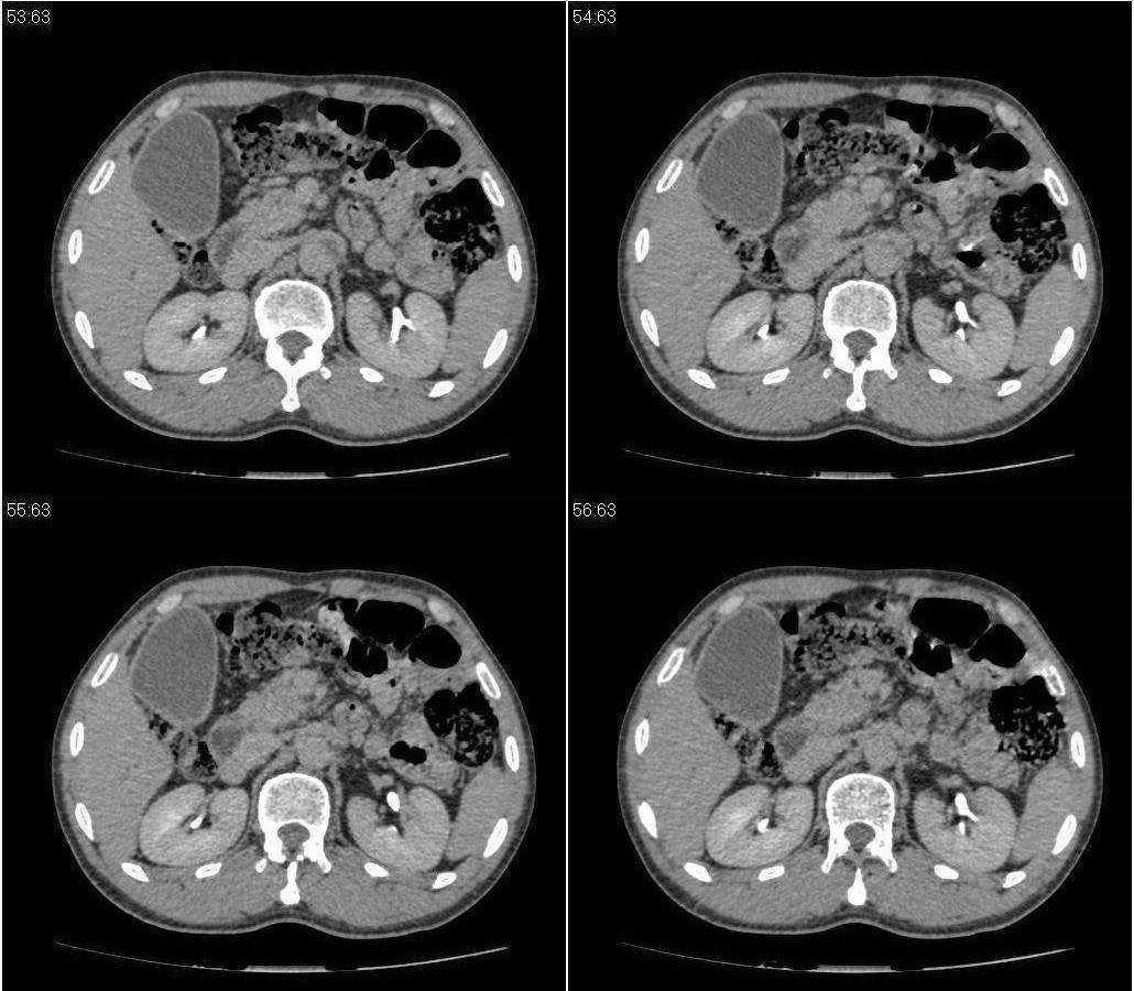 CT21384:男性,50岁。发现无痛性黄疸十余天,B朝提示肝胆管