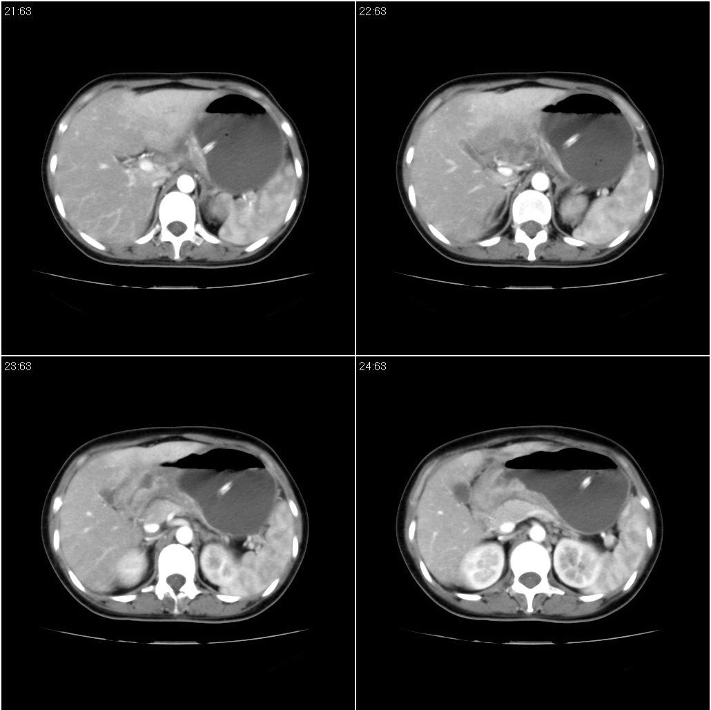 有明显淋巴结吗?我们感觉像是胰腺和胃窦。不过,胰腺尤其是胰头较大,不知道是否正常?