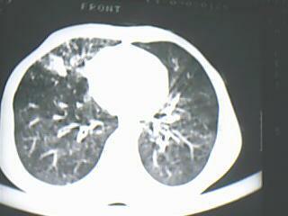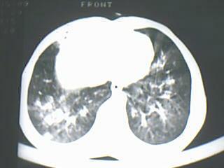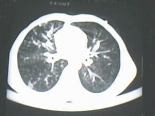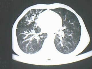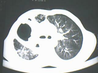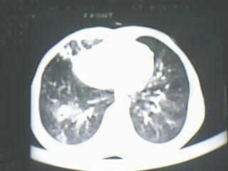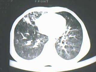 以下是引用yangyang2000在2009-8-7 23:14:00的发言:[br]右上肺张力空洞,酐珞坏死灶,支气管扩张,多发播散灶,纵膈淋巴结显示,胸膜增厚---结核