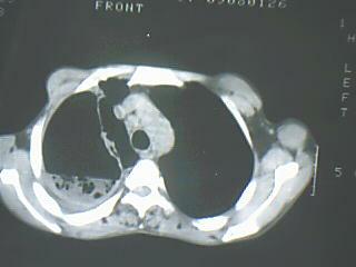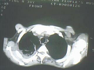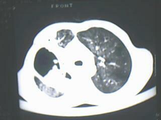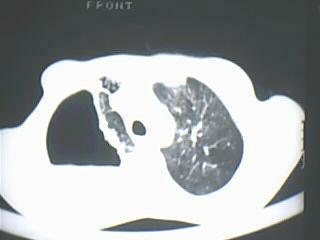 以下是引用jiangjing在2009-8-7 14:38:00的发言:[br]右上肺张力空洞,酐珞坏死灶,支气管扩张,多发播散灶,纵膈淋巴结显示,胸膜增厚---结核