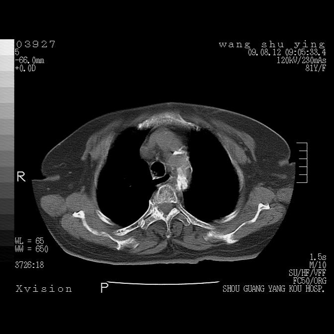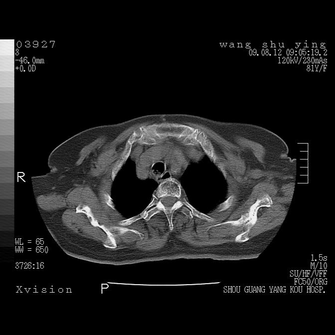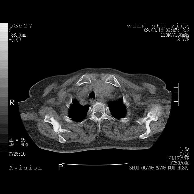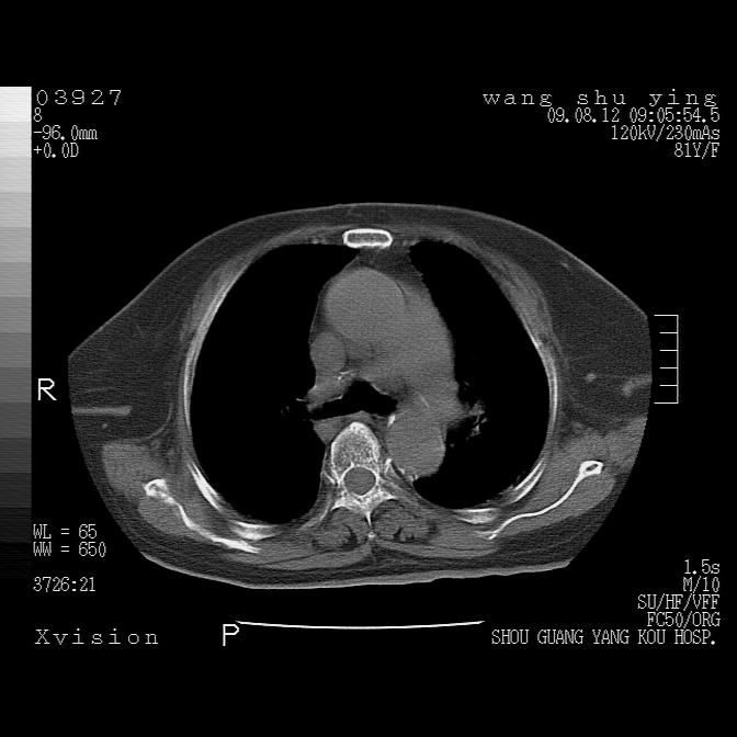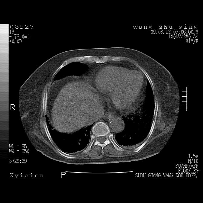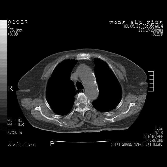 以下是引用随光逐影在2009-8-12 19:42:00的发言:[br]1)两肺感染性病变伴双侧胸膜肥厚。2)不排除左侧甲状腺腺瘤。3)肝脏占位性病变;建议行进一步检查。