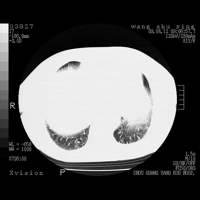 以下是引用sdzyy在2009-8-12 18:17:00的发言:[br]两肺感染性病变伴双侧胸膜肥厚。[br]左侧甲状腺腺瘤不除外。[br]腹水+心包积液。[br]支持
