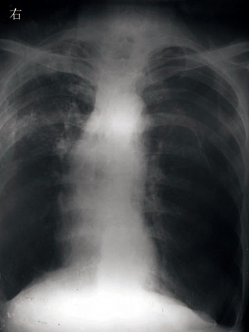 [br]1)右上继发性肺结核。2)慢性支气管炎,肺气肿。3)左侧气胸。
