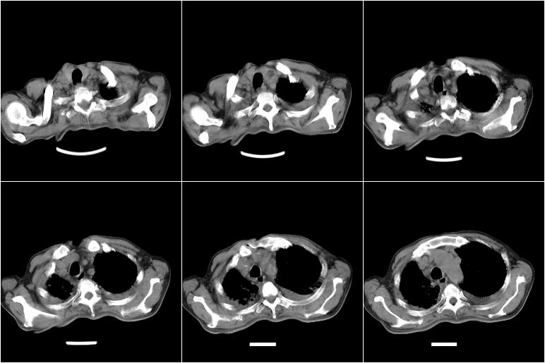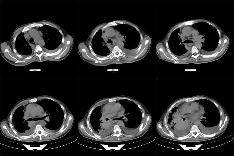 以下是引用边生丽在2009-8-17 11:43:00的发言:[br][br] [br] 右肺中心型癌伴右肺下叶不张、双肺转移并癌性淋巴管炎、心包和双侧胸腔积淮(转移?)、脑转移、肝转移、多骨(颅骨、椎骨)转移。 [br] [br]