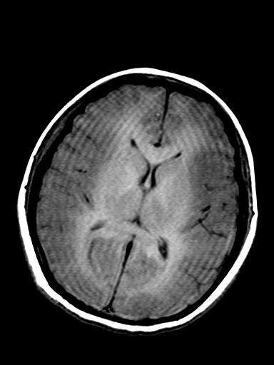 以下是引用qiuleiyu在2009-8-18 16:50:00的发言:[br]较对称性脑白质异常信号,深部白质t2明显低信号(铁质沉积过多?)[br]考虑脑白质病变,请结合临床病史及实验室检查进一步分析。