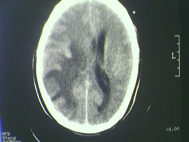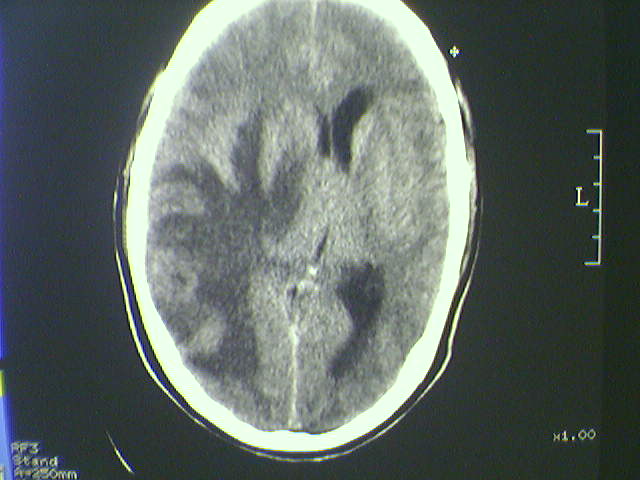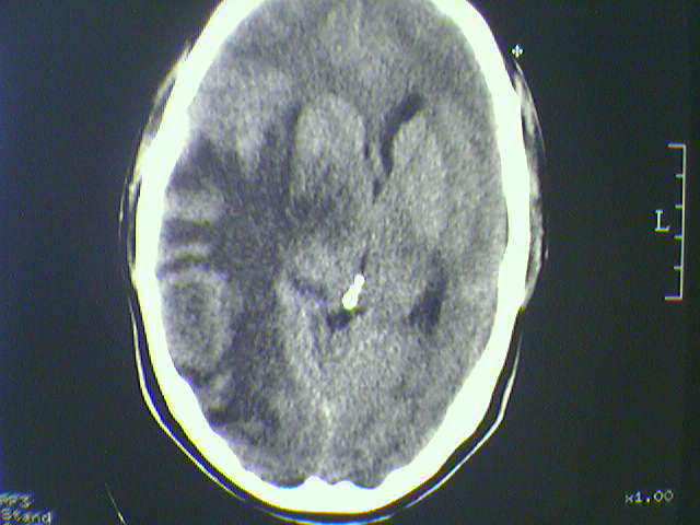 CT21792:男48岁,头痛昏一月加重伴双下肢无力一天,反应迟