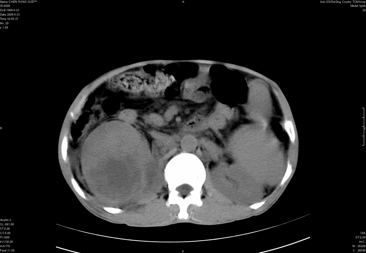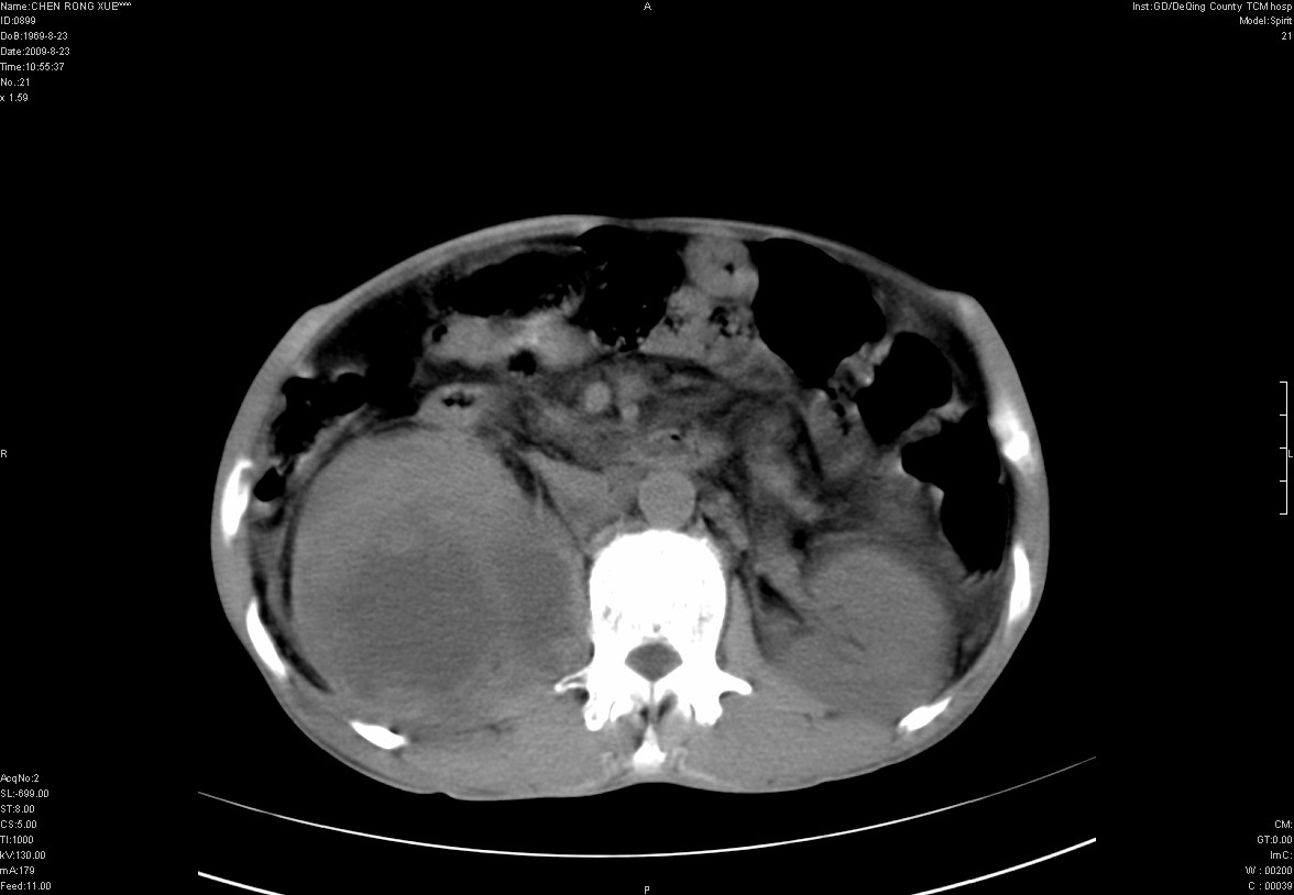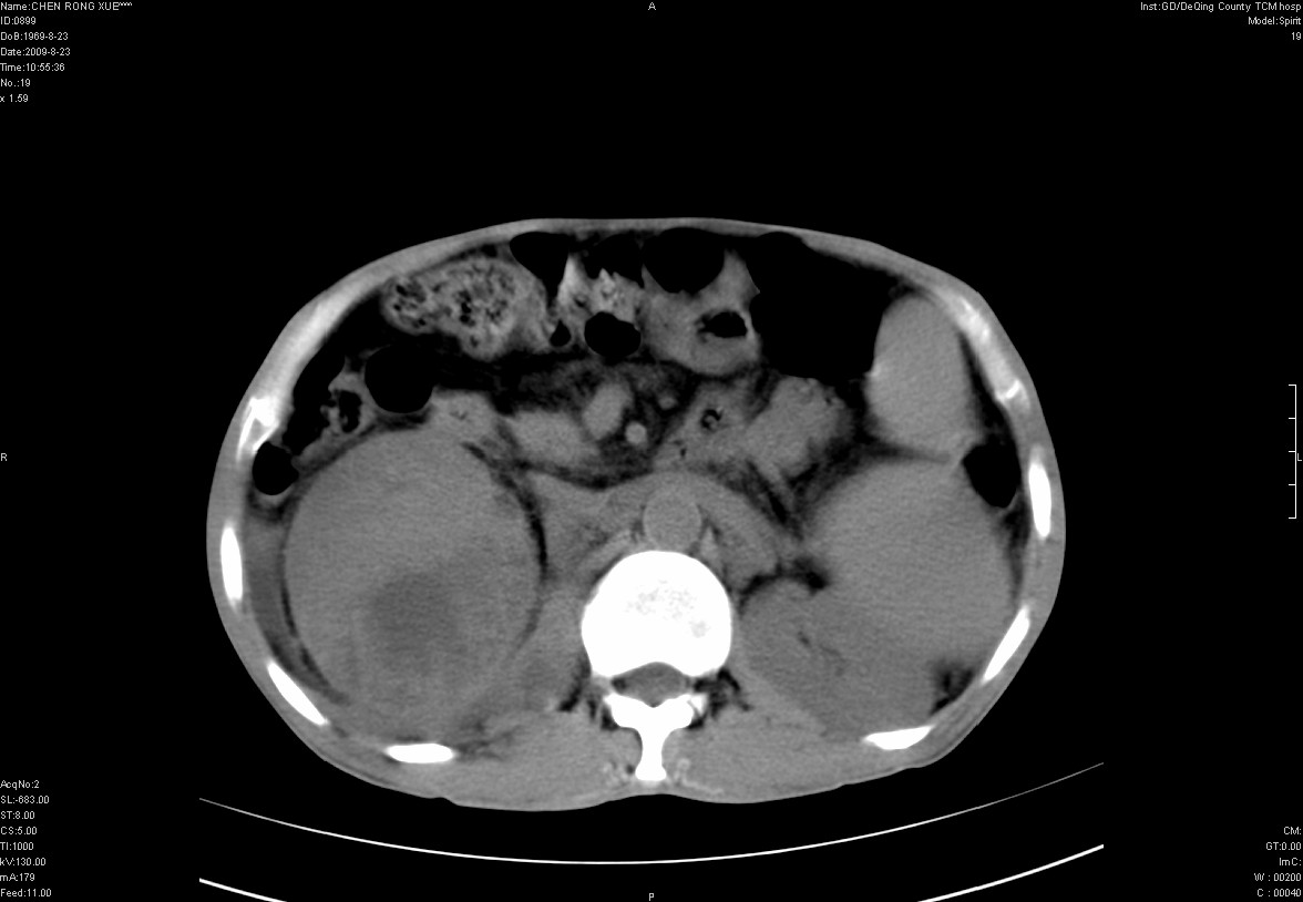 以下是引用qiuleiyu在2009-8-23 15:17:00的发言:[br]1、慢性肝病,肝硬化,脾大,门脉高压。胆囊小结石。[br]2、右肾明显肿大,伴片状低密度灶,累及右侧腰大肌,肿瘤及炎症性病变皆有可能大,建议增强。