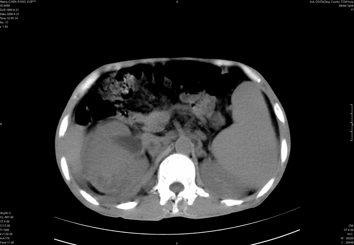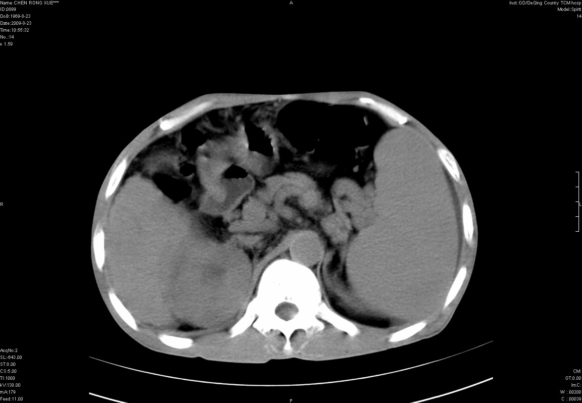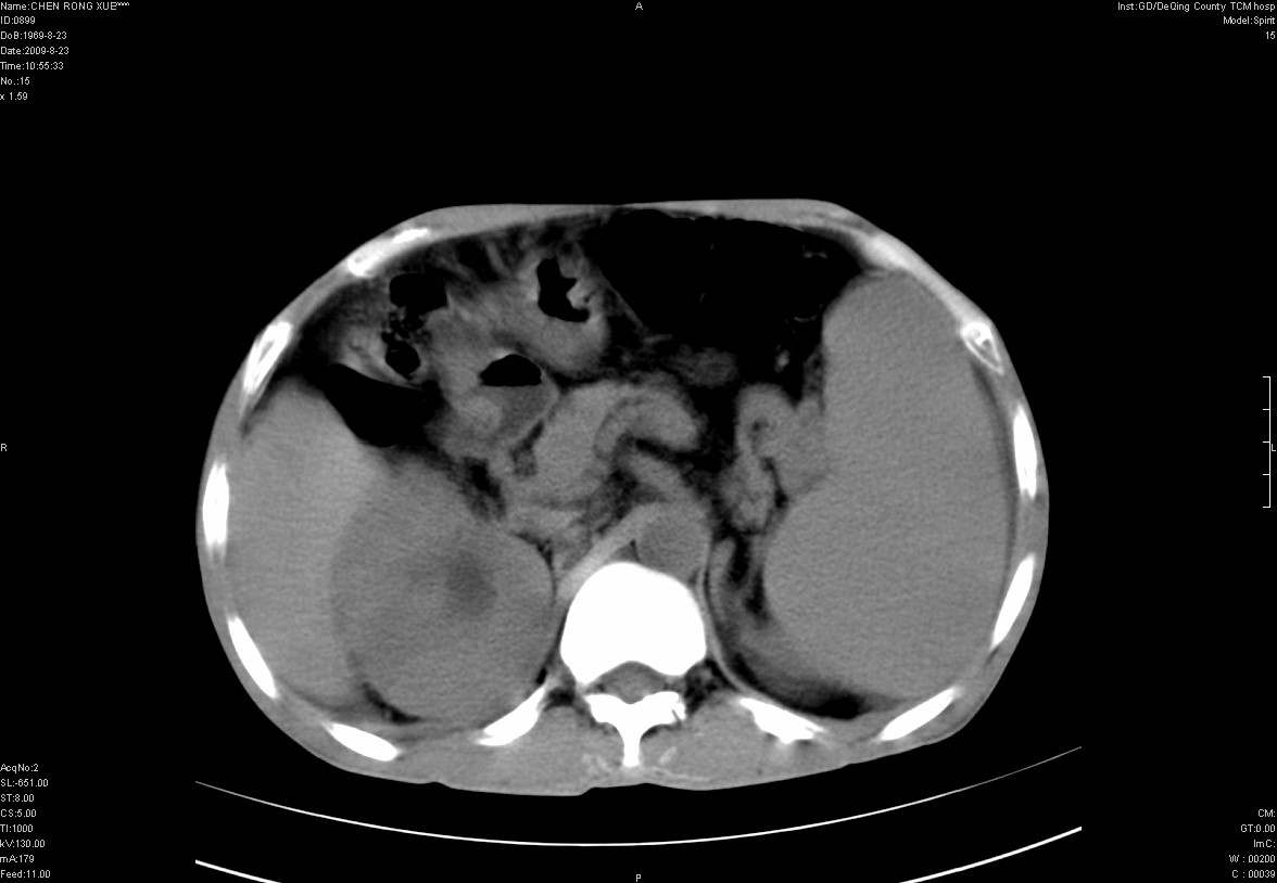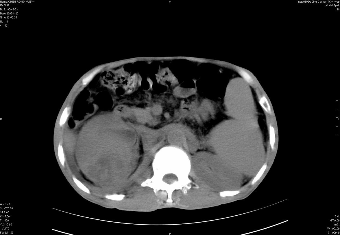 以下是引用dyqct在2009-8-23 16:53:00的发言:[br][quote]以下是引用qiuleiyu在2009-8-23 15:17:00的发言:[br]1、慢性肝病,肝硬化,脾大,门脉高压。胆囊小结石。[br]2、右肾明显肿大,伴片状低密度灶,累及右侧腰大肌,炎症性病变可能,建议增强。