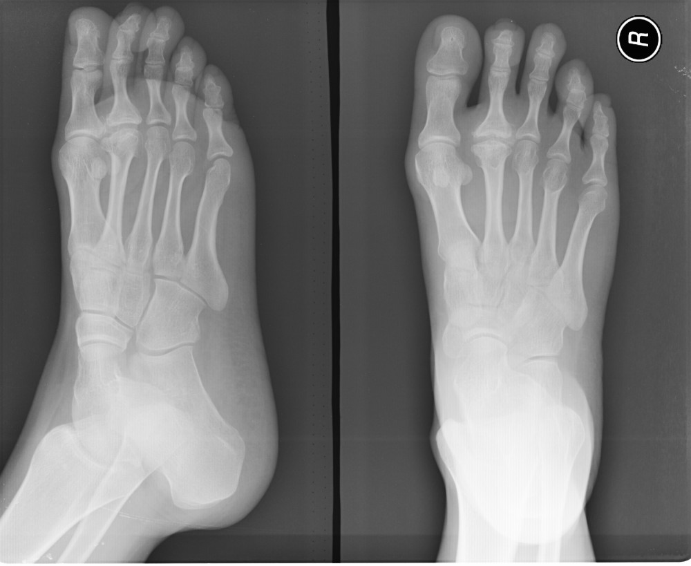以下是引用拾荒者在2009-8-26 20:50:00的发言:[br]跖骨头骨骺缺血性坏死又称freiberg病或kö;hlerⅱ病。好发于第二跖骨,偶见于第三跖骨,第四跖骨罕见。发病以13~20岁最多,平均19岁。女性居多。发病与外伤、职业及劳动体位密切相关。[br]本例典型的跖骨头骨软骨炎并跖趾关节退行性变。