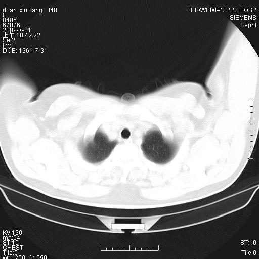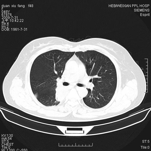 f,48,主因咳嗽咳血来我院检查,无发热。