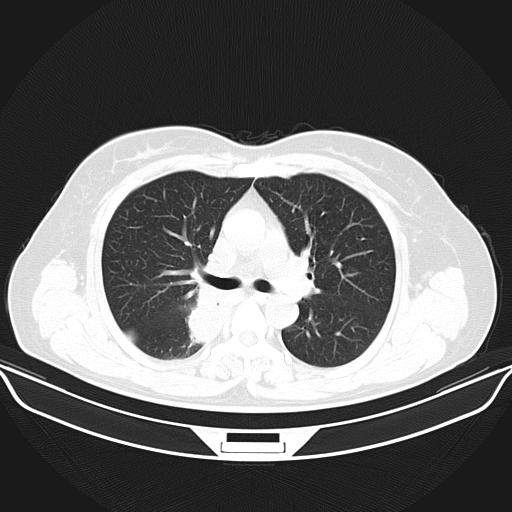 谈一谈个人的看法:机器性能应该不错,可惜扫描方法不太正确,即没有及时薄层扫描图像,也没有增强检查,这样的检查方法不正确的图片拿来研究只能是猜一猜:右肺下叶阻塞性改变,建议进一步检查删除肺癌。