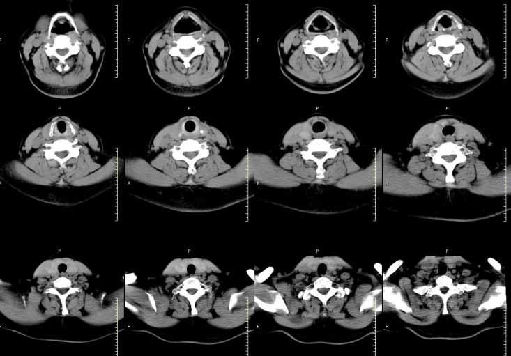 女,54岁,颈部增粗来就诊,体检示双侧甲状腺肿大,进行增强扫描,考虑为结节性甲状腺肿。