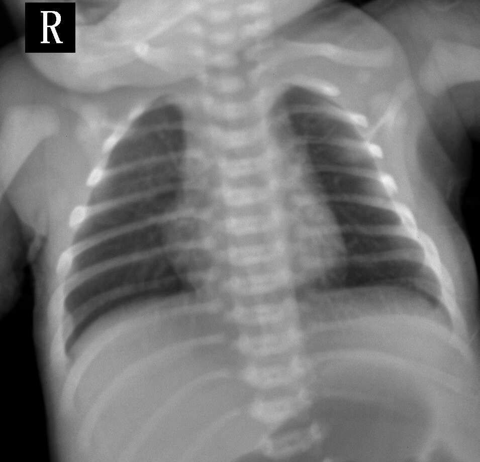 因为婴儿不能配合,影像有点模糊,患者3天,发作痰鸣,气促伴发绀,临床诊断:1、吸入性肺炎2、肺不张