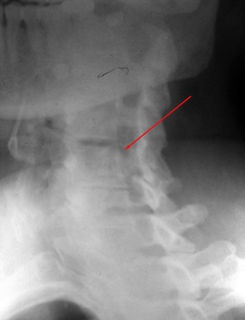 颈部看不清,肩部没问题。最好做一个动力性颈椎侧位片看一下
