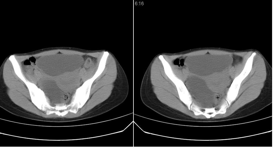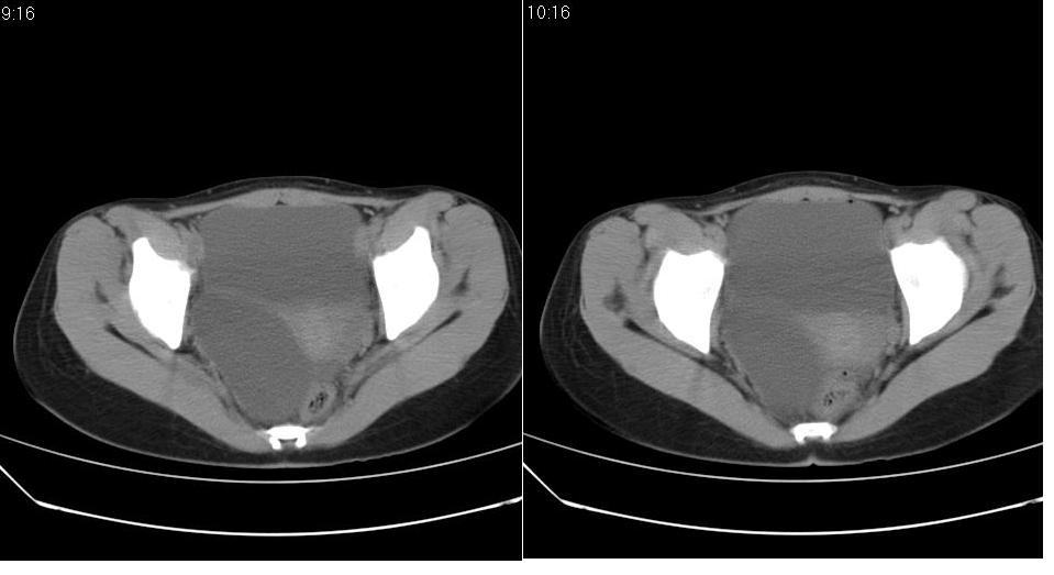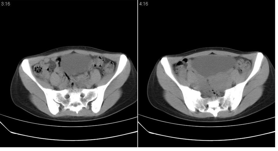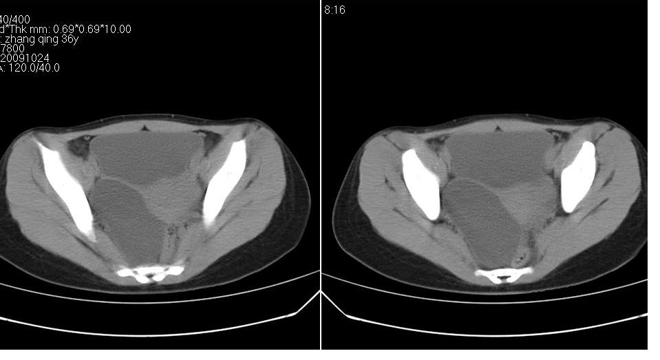 CT22811:女 36岁,B超提示右侧附件囊性占位。