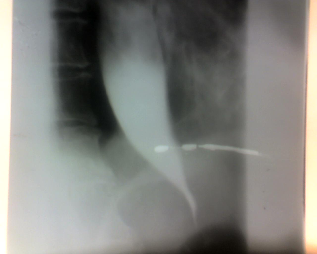 以下是引用zhanggenliang在2009-10-26 15:00:00的发言:[br][quote]以下是引用zy_zj在2009-10-26 10:33:00的发言:[br]食管下段漏斗样改变,边缘锐利,不象恶性原因造成的。考虑贲门失迟缓症,又称贲门痉挛、巨食管、是由食管神经肌肉功能障碍所致的疾病,其主要特征是食管缺乏蠕动,食管下端括约肌(les)高压和对吞咽动作的松弛反应减弱。临床表现为咽下困难、食物反流和下端胸骨后不适或疼痛。。食管扩张分度:轻度扩张(直径<3.5cm)[br]中度扩张(直径3.6~ 6.0 cm )重度扩张(直径大于6.1[br]cm
