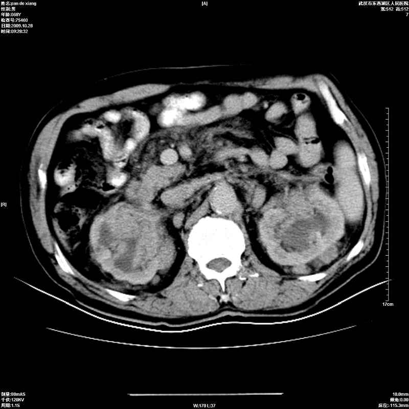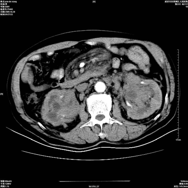 以下是引用杀毒软件在2009-10-28 20:41:00的发言:[br]结合临床考虑---白血病双肾改变或淋巴瘤。