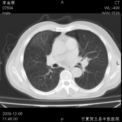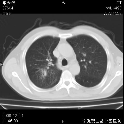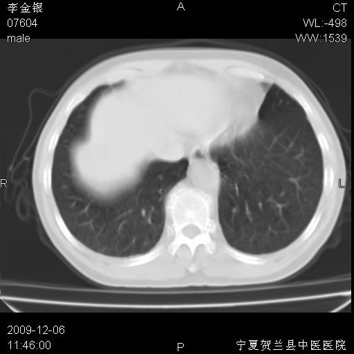 那个片影应该大部分都是病灶,病灶沿肺段支气管分支生长,后段完全显示不清、闭塞。若为不张应该伴有叶裂的移位,若为炎症应有空气支气管征。