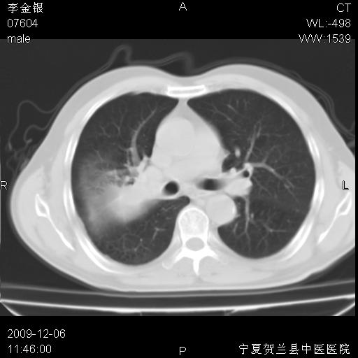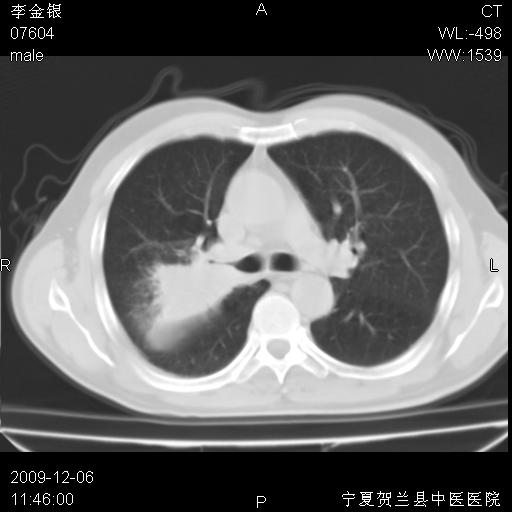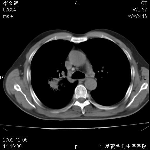 考虑右肺中心型肺癌伴阻塞性肺炎及右肺门淋巴结转移