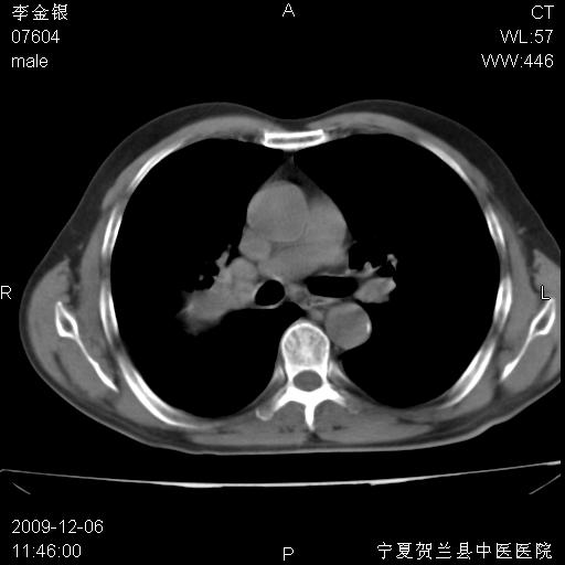 符合中央型肺癌的ct表现并肺出血。但有一点腔静脉后有一钙化的淋巴结啊